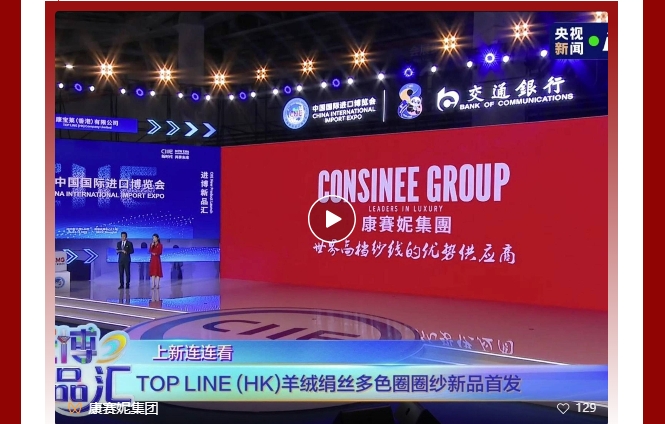 On the morning of November 6, the CCTV News app's "CIIE New Product Showcase" live broadcast captured the attention of millions of netizens as the TOPLINE brand made its global debut! As an innovative and dynamic brand under Consinee, the newly launched ROSELLE cashmere-silk multi-color loop yarn continues the group's relentless pursuit of top-tier materials. The groundbreaking fusion of cashmere and silk, along with the innovative multi-color loop technique, sets a new benchmark for material innovation in the high-end textile industry, sparking a wave of industry attention!