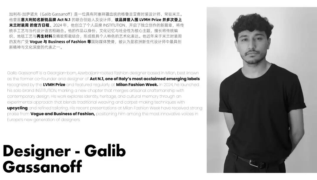 Behind Consinee’s showcase at Pitti Uomo lies the support of top creative talents. The project is steered by Sara Sozzani Maino, Creative Director of Fondazione Sozzani, and celebrated designer Galib Gassanoff. Together, these influential figures bridging fashion and craft have infused "Echoes of Craft" with intercultural vision and emotionally resonant creativity, endowing yarn with a unique identity—both globally conversant and deeply rooted in tradition.